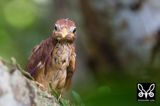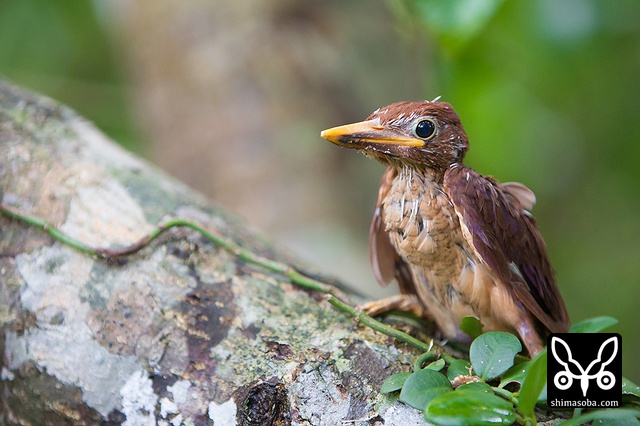 4羽目の巣立ちビナ。巣立つ瞬間は見られず残念。アカショウビンもヒナのうちはこんな色。