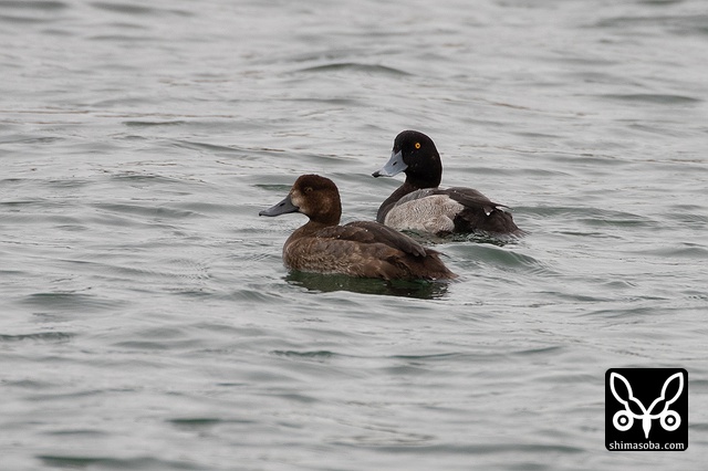 キンクロハジロのオス(奥)と幼鳥。
