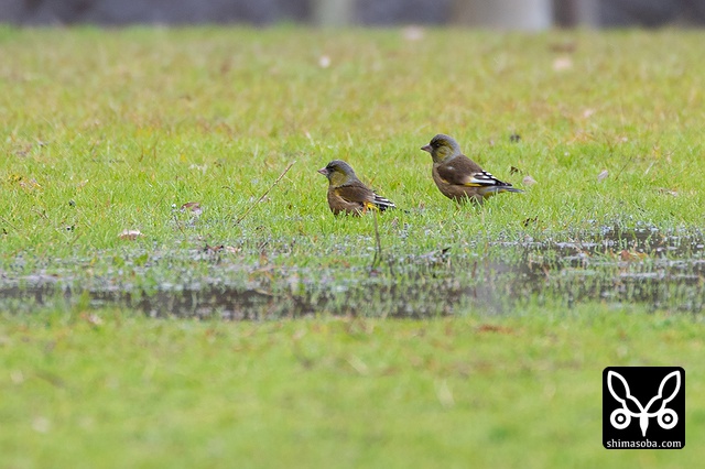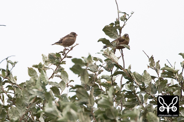 カワラヒワの群れはあちこちに。