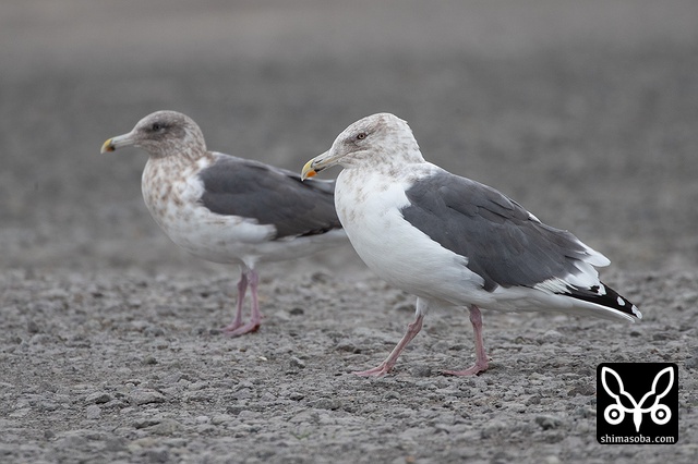 奥がワシカモメ成鳥冬羽。