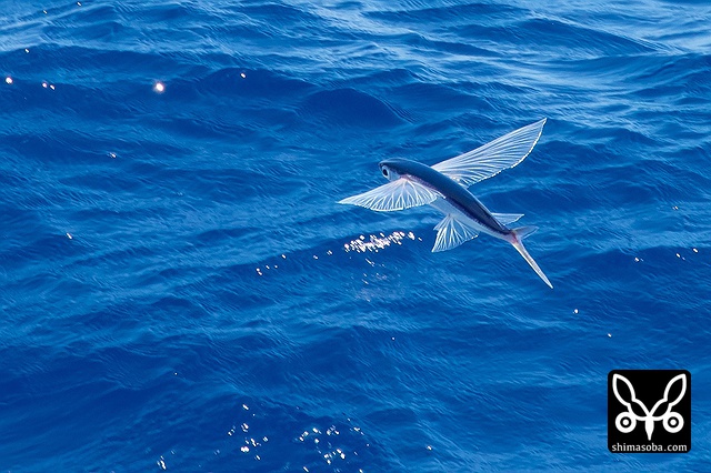フェリーに驚いたトビウオが跳ねるがカツオドリはやってこない。