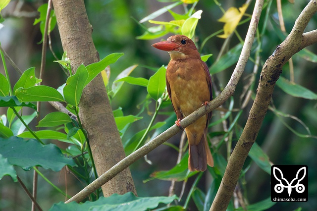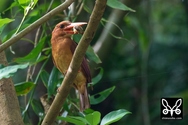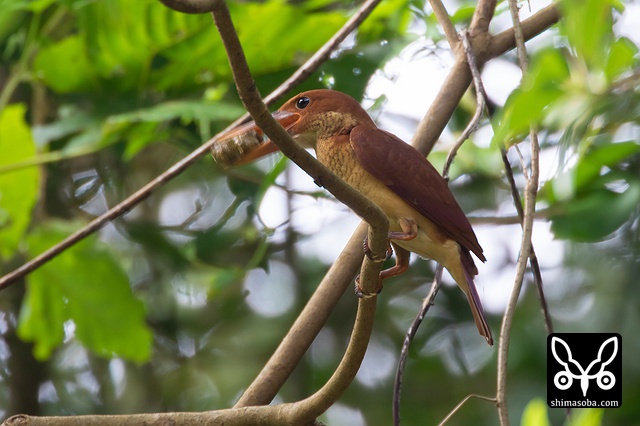 カニを捕まえたアカショウビン成鳥。