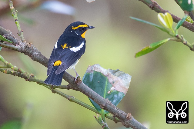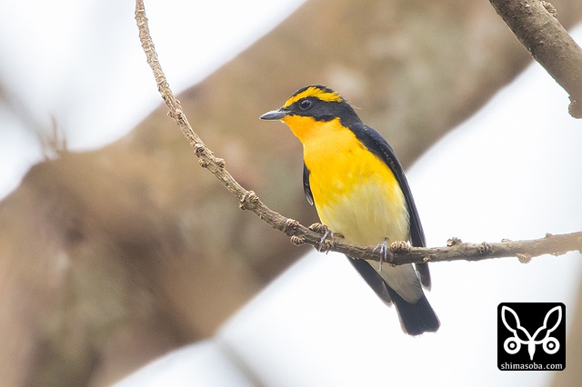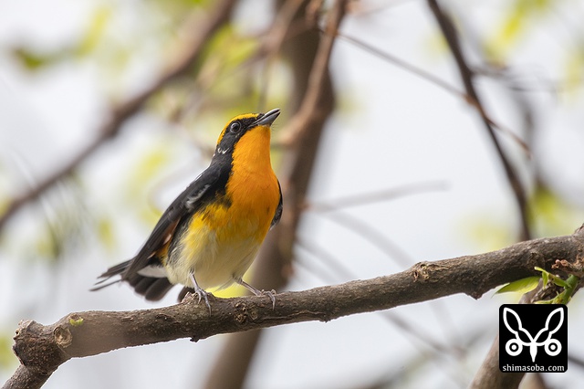 キビタキのオス。上のくちばしの先が少し欠けているのが分かります。