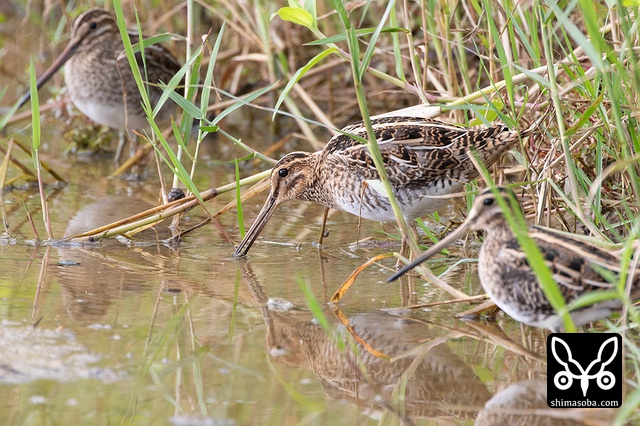 タシギ3羽。