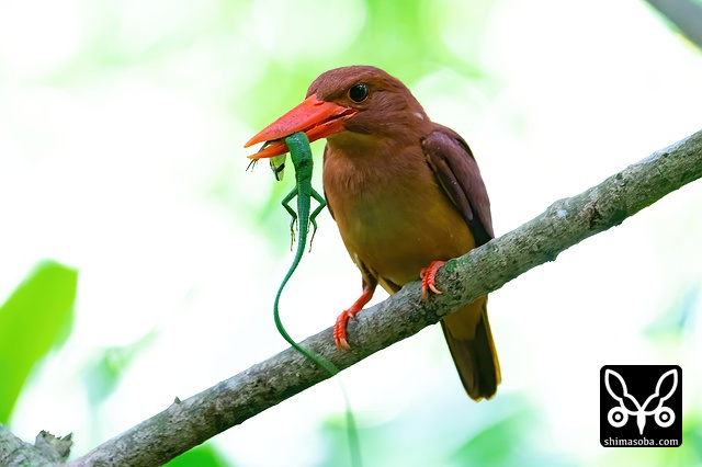 子育てを終えたアカショウビン。越冬地への渡りにそなえてゆっくりしています。