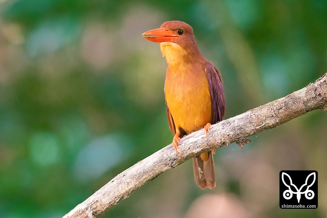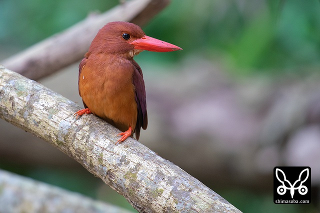 アカショウビンは、腰の水色の羽が美しいです。