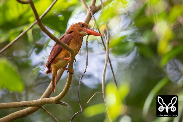 このオオコノハズクは、川の上に突き出した松の木に止まり、川の淀みにやってくるカエルを狙っているようでした。一度いなくなってもしばらくすると戻ってきます。お気に入りの餌場のようです。ただ、あまり慣れていない個体なのでシャッターは1枚しか切りません。貴重な餌場を放棄されたらオオコノハズクもかわいそうですし、私の楽しみも減りますので…。^^;止まっている枝に大きなタカアシグモが写っていますが気付いていないのだろうか?