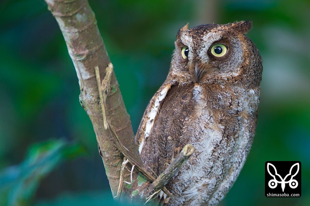 木になりきるコノハズク。^^昼なんで、羽角がピンと立ってます。