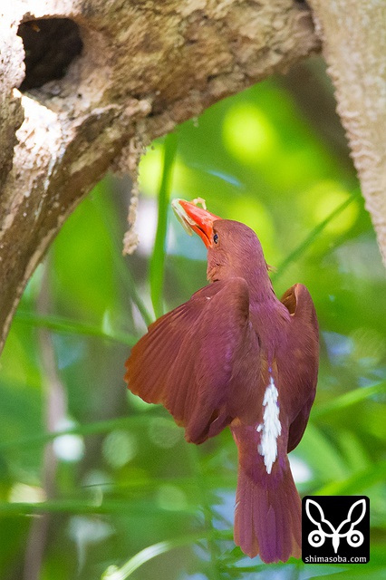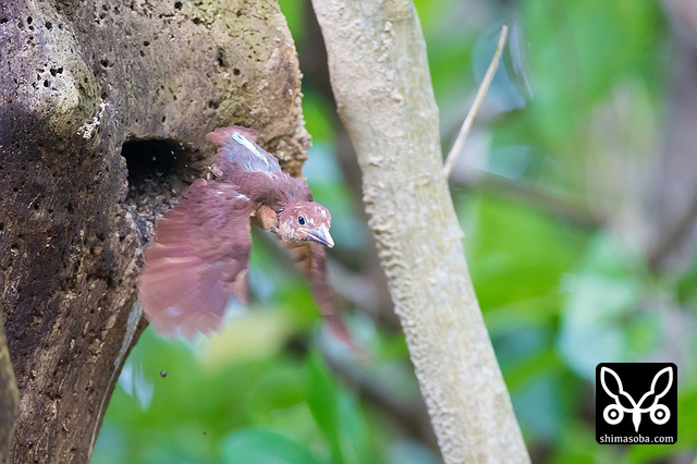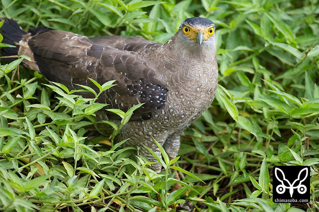 今年、5個体目の幼鳥。飛ぶところを撮りたかったのですが、ちょっと元気がないようで1メートルほどの高さまでしか飛び上がれず、枝に止まれません…。山の斜面を歩いて上っていき、木の枝を伝って高いところまで行きました。要注意個体です。