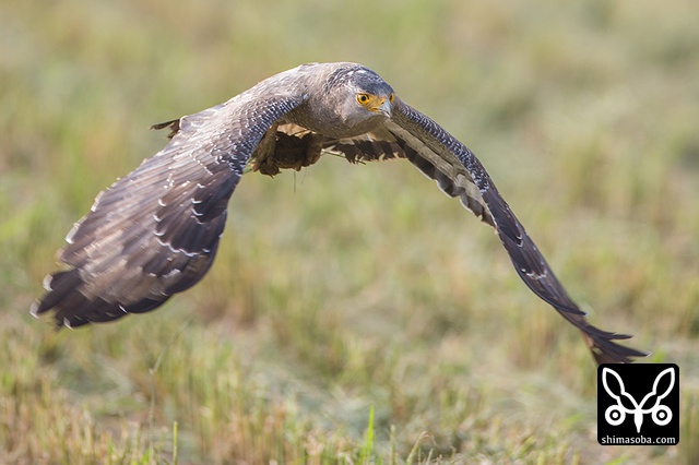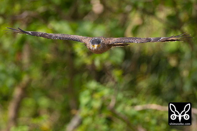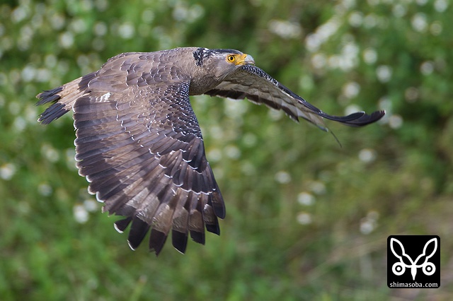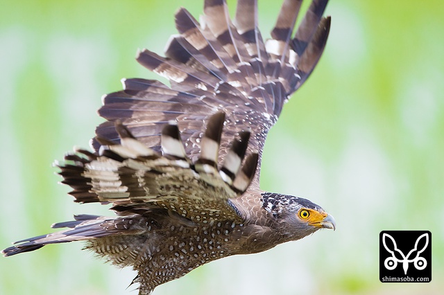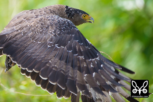カメを食べた後、ご機嫌で飛び去るカンムリワシ。^^