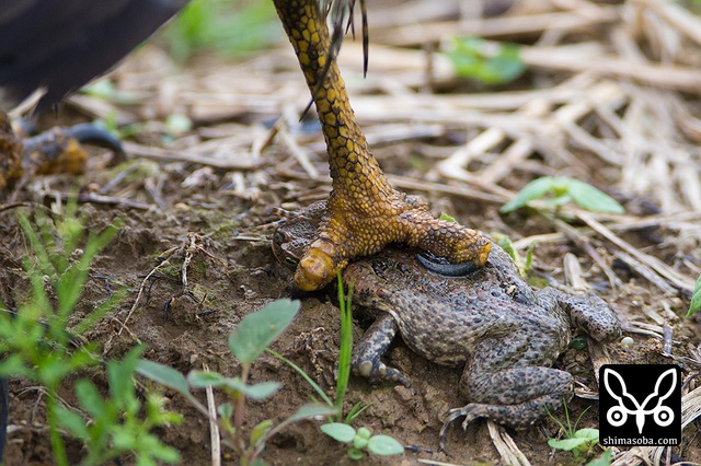 大きなカエル(たぶんオオヒキガエル)を両足にがっちり掴んで!!