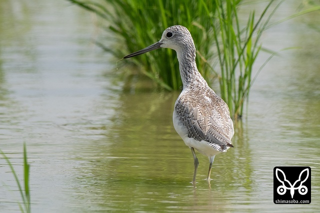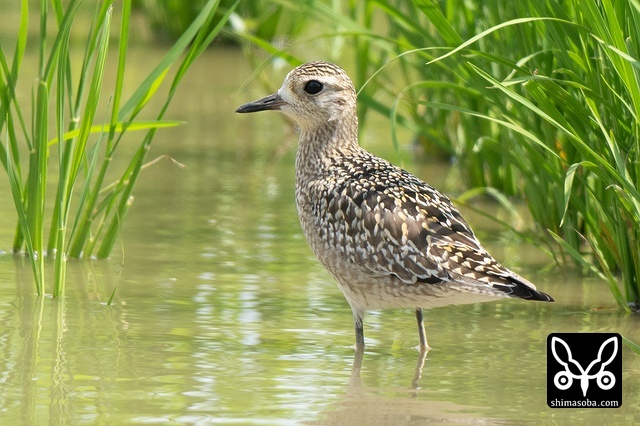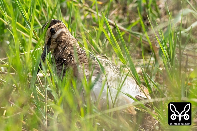 こちらもタシギの幼鳥。数羽の小さな群れが島内の水田地帯にいます。