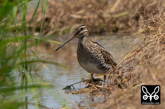 草むらにタシギ。この日のジシギは全てタシギでしたが、稲も草も伸びて見づらいですね。