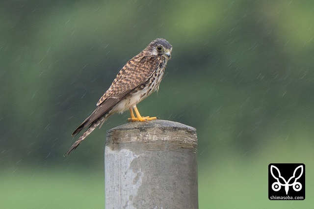 越冬組のチョウゲンボウ。雨にずぶ濡れです。