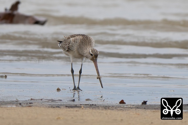 砂浜の穴にくちばしを突っ込んでは甲殻類を引っ張り出して食っていました。