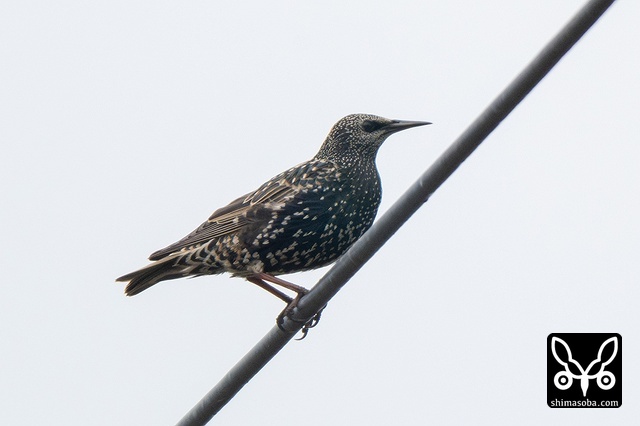 同じ群れいいたホシムクドリ。こちらはムクドリと採餌スタイルが似ているので、長いこと群れを形成しています。