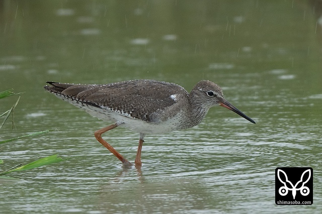アカアシシギは成鳥、幼鳥が滞在。この個体は、まだ夏羽を残した状態の成鳥。