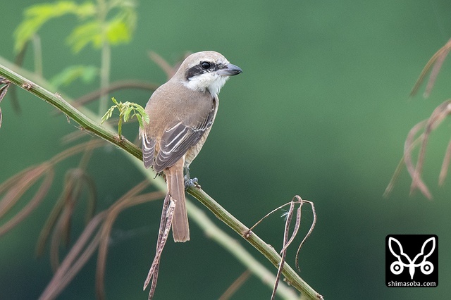 雨に降られるシマアカモズ。人通りが多いところにいました。