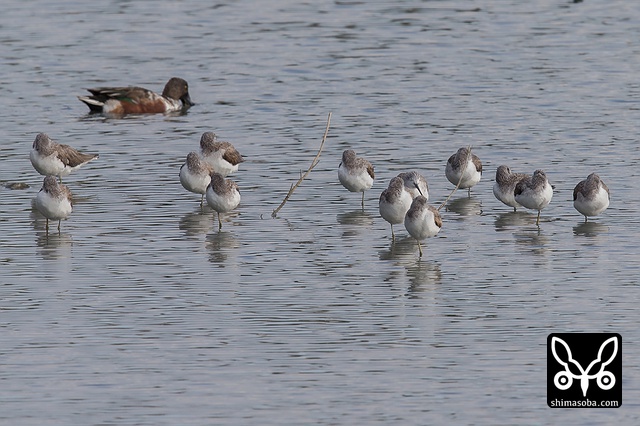 アオアシシギ、セイタカシギともに20羽前後いた。