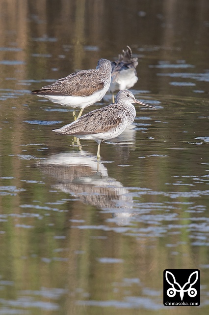 アオアシシギは2カ所合わせて6羽。夏羽から冬羽へ変わりつつあります。