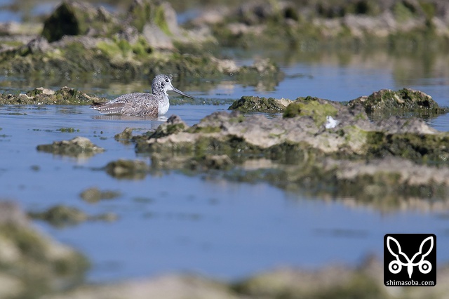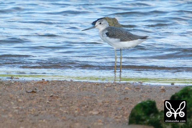 海岸にアオアシシギ。