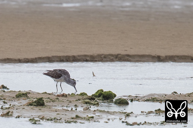アオアシシギは波打ち際で小魚を探すのですが、きょうはあまり獲物がいなかったようです。