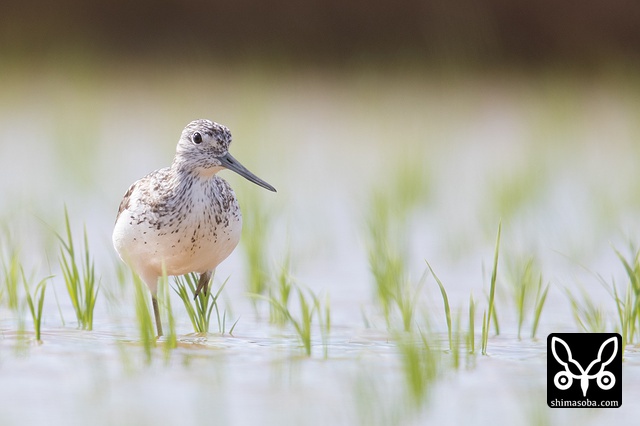 田んぼにアオアシシギの幼鳥。