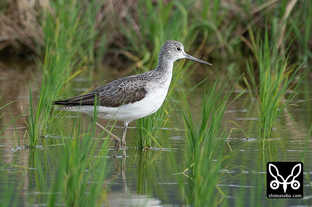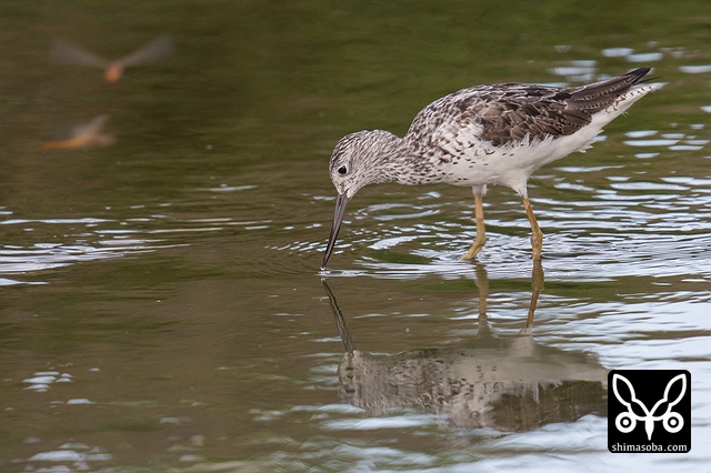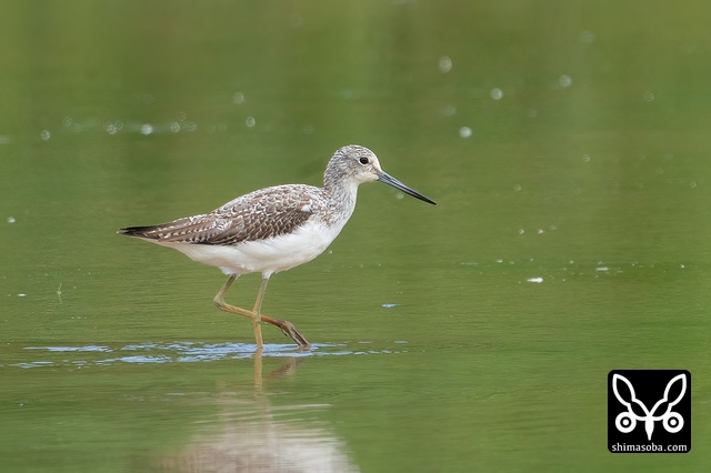 夏羽が数枚見えるアオアシシギ。