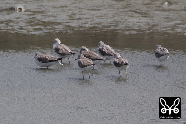 アオアシシギは多いときは数十羽が休んでいる。