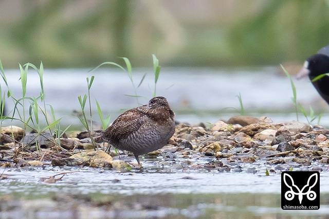 数日前に降り続いた雨で増水し、心配していましたが同じ場所にいたアオシギ。