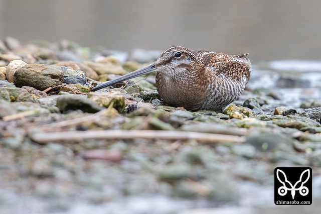 小雨の降るなか一休みのアオシギ。