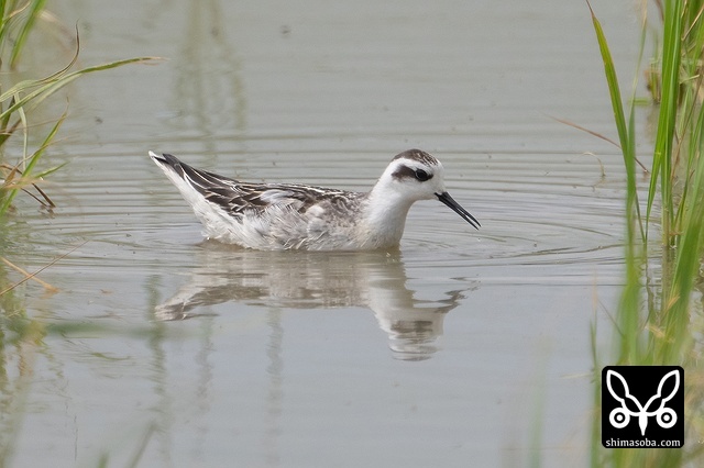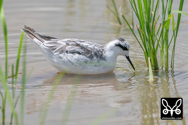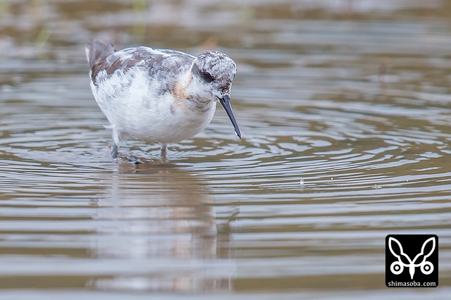 アカエリヒレアシシギは、水面に浮かぶ小さな虫を食っていました。