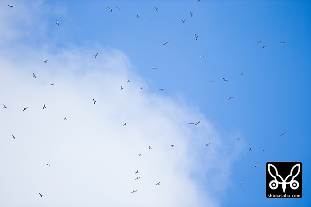 滑空しながら通過していくアカハラダカ群れ。