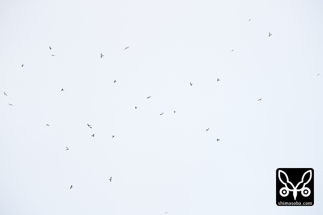 午前8時半ごろ、東の空からアカハラダカの群れが現れた。