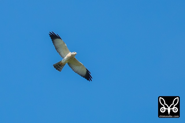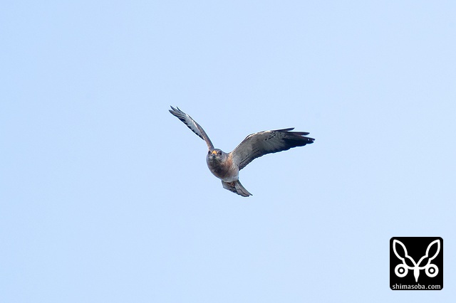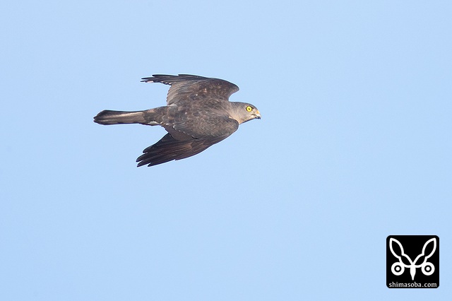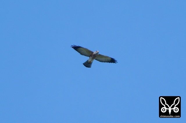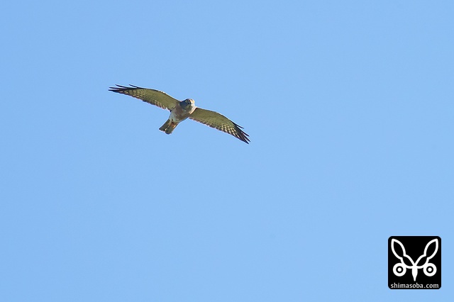 遥か遠くをアカハラダカ成鳥メスが飛んだ。仲間がおらず不安そうな様子。