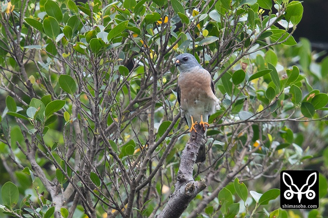 アカハラダカのメス成鳥。天候がすぐれず、渡れないアカハラダカたちが多く島に滞在しています。