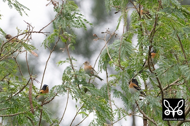 アトリは数十羽の群れでいました。