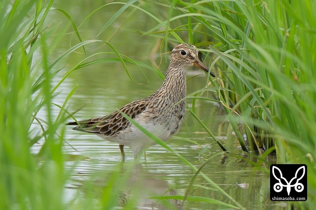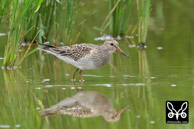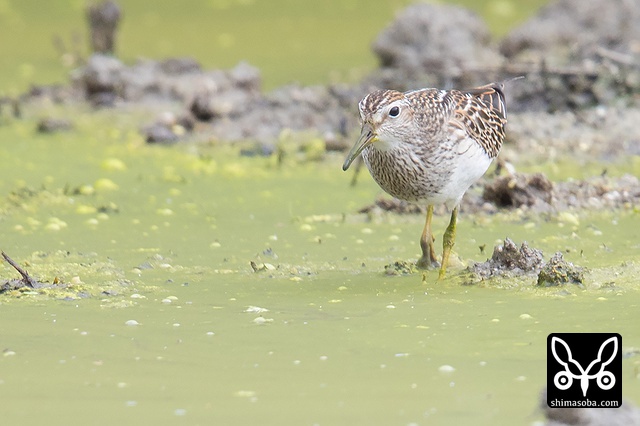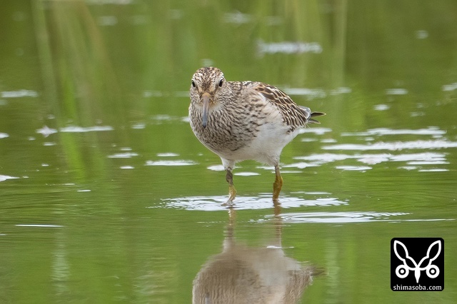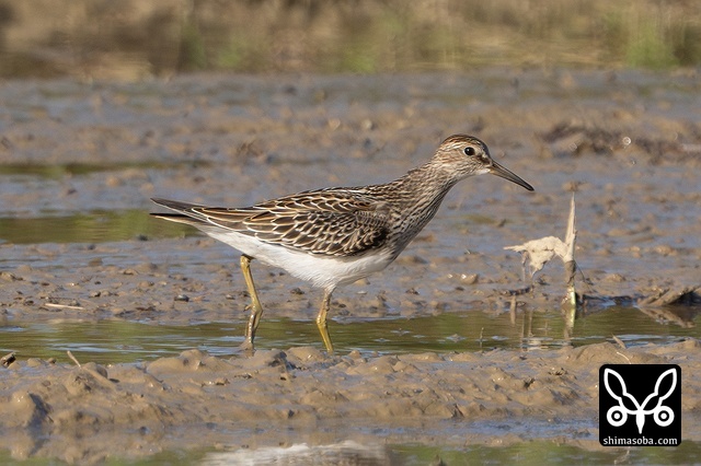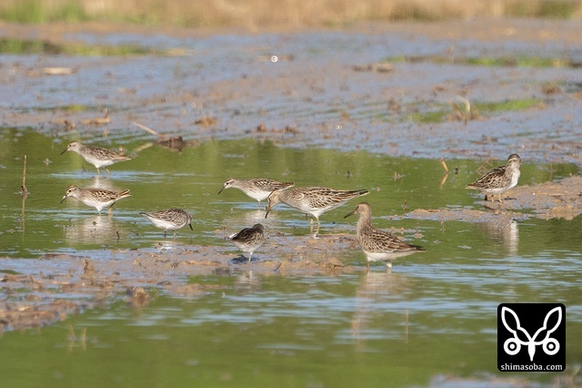 上の写真とは別個体。これは「アメリカウズラシギだ!!」と思って撮ったやつ。でも、よく見るとウズラシギかな? ^^;と思ったけど、 `SHORE BIRDS IN JAPAN`_ さんと `エタ`_ 君にご指摘いただきアメリカウズラシギとなりました!! ライファーです。^^ ご両人、ありがとうございます!! しかし、エタ君は、アメリカウズラシギ見たことないのに当てるってのはすごいね。^^;.. _SHORE BIRDS IN JAPAN: http:.. _エタ: http://blogs.yahoo.co.jp/tugumin1026