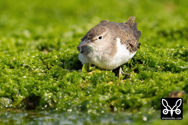 イソシギ第1回冬羽。一見地味ですが、羽に光が当たると美しく輝きます。