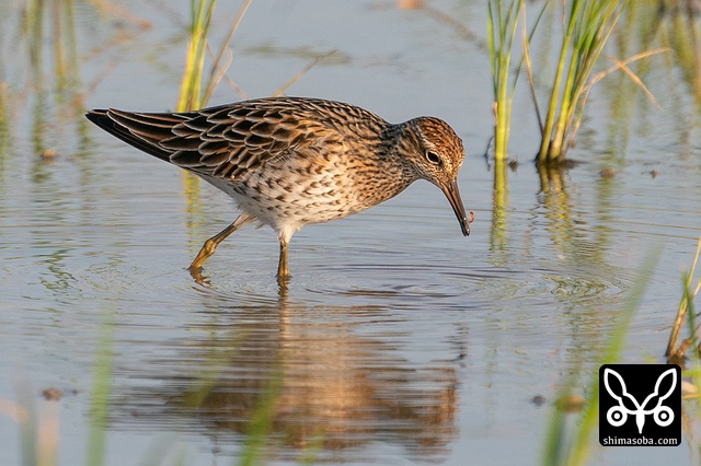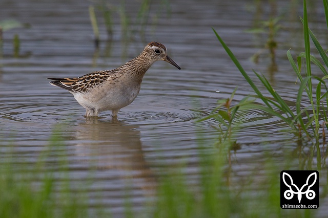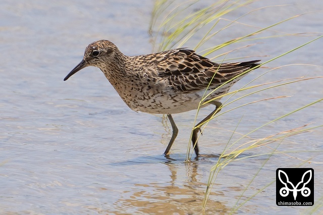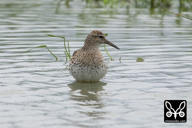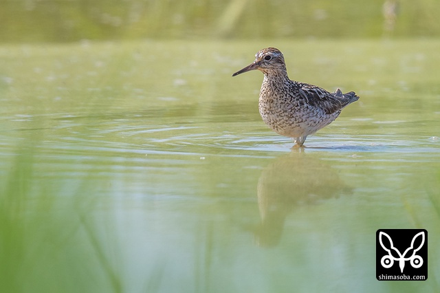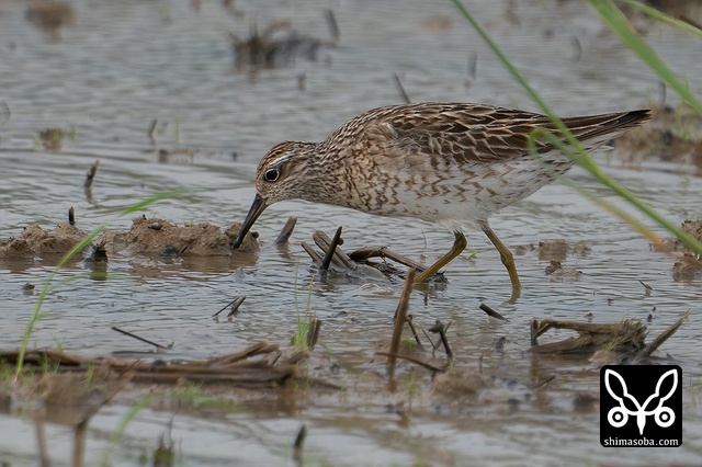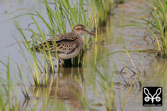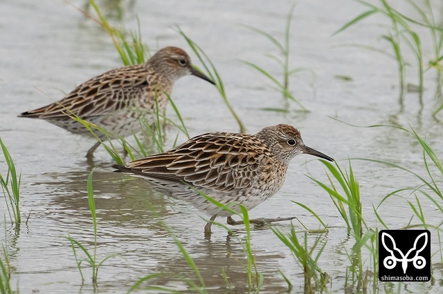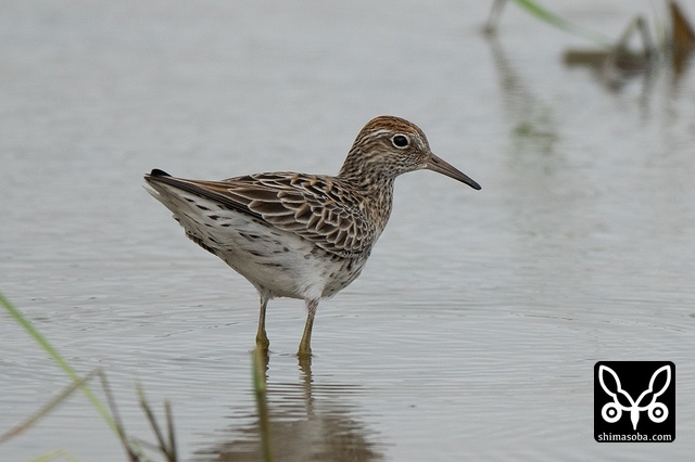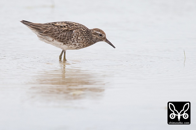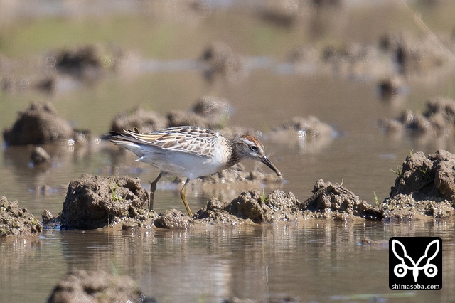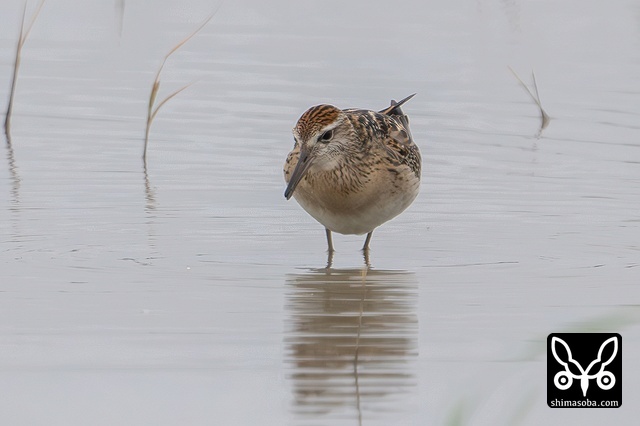 ウズラシギ。数は少なく、島内の田んぼで見かけるときは大抵1羽です。