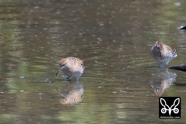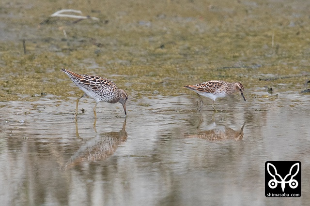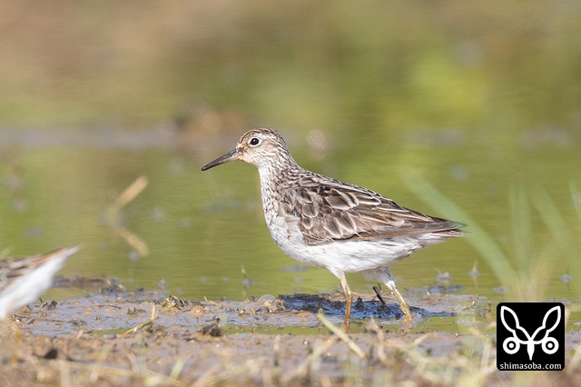 上の個体と一緒にいたウズラシギ。こちらも数枚の冬羽が出ています。