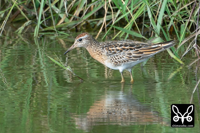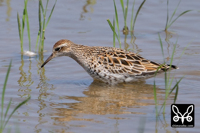 ウズラシギ夏羽後期。あちこちで見るようになりました。