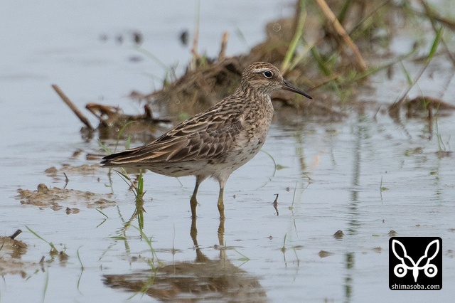 やっと渡ってきたウズラシギ。三角池に数分間滞在したのちどこかへ飛び去りました。タイミングの良い出会いでした。