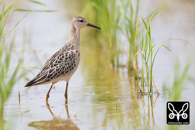 エリマキシギのオス幼鳥。同じ田んぼにメスの幼鳥もいました。