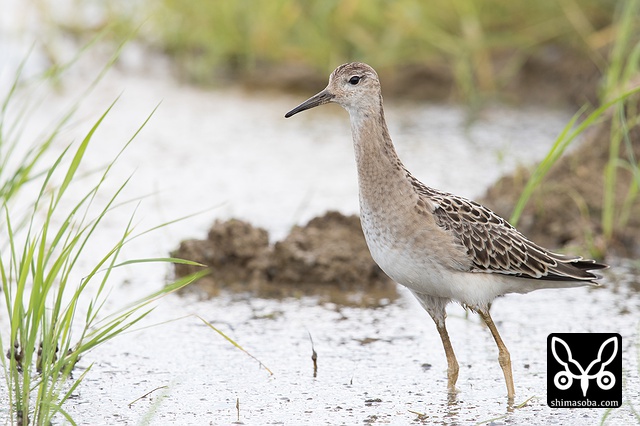 オグロシギと同じ田んぼにいたエリマキシギ幼鳥。