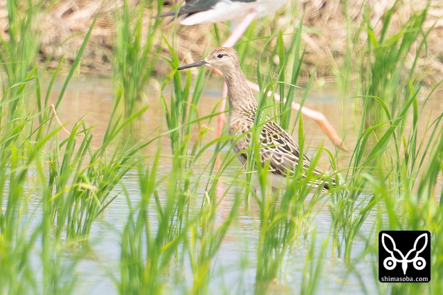 エリマキシギも今季はあちこちの田んぼで見ます。