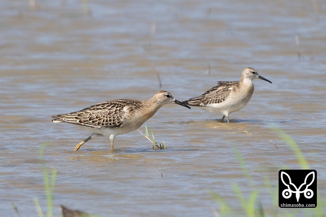 エリマキシギの幼鳥。手前がオスで奥がメス。