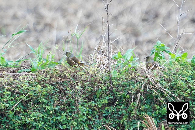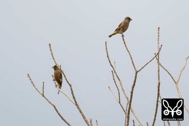 オオカワラヒワ2羽。両方メスの成鳥です。