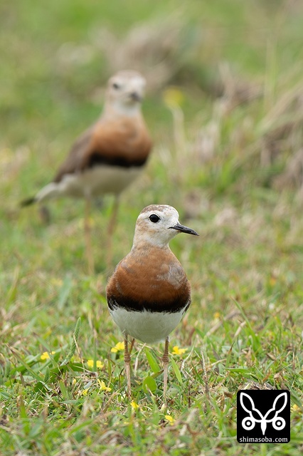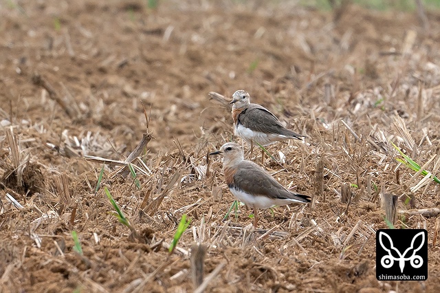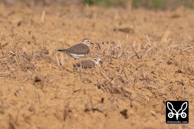 後ろ姿。オオチドリとムナグロはわずかにムナグロの方が大きいです。ムナグロはオオチドリが気に入らないようでたまに追い払っていました。