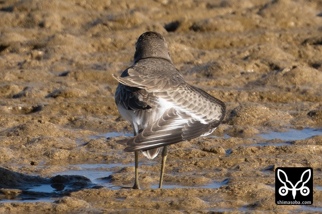 オオメダイチドリ。こちらは幼羽から第1回冬羽へ換羽中です。三列風切の白く見えるところは部分白化でしょうか。